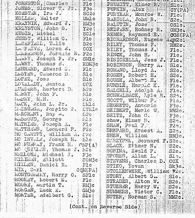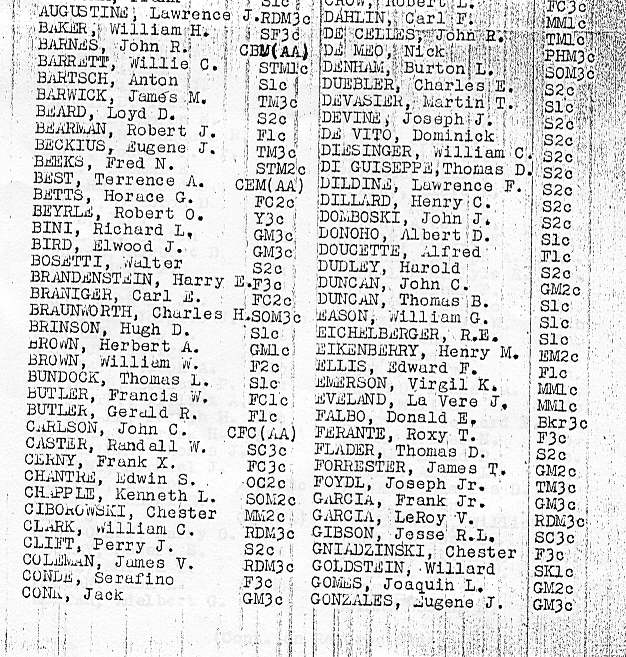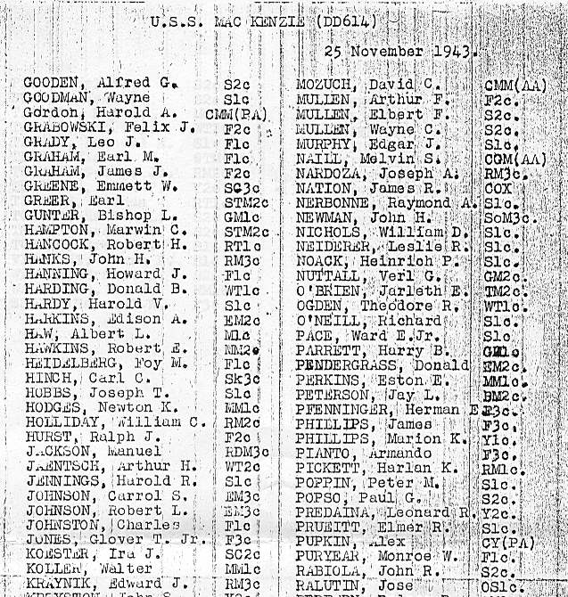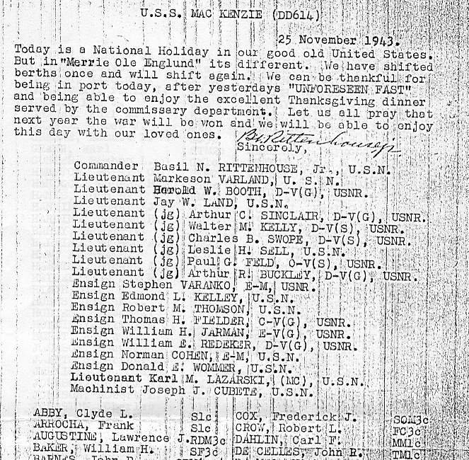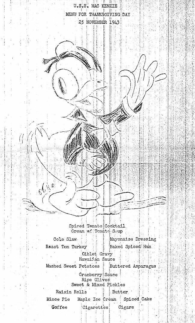 USS MacKenzie (DD-614) Thanksgiving Day Menu and Roster